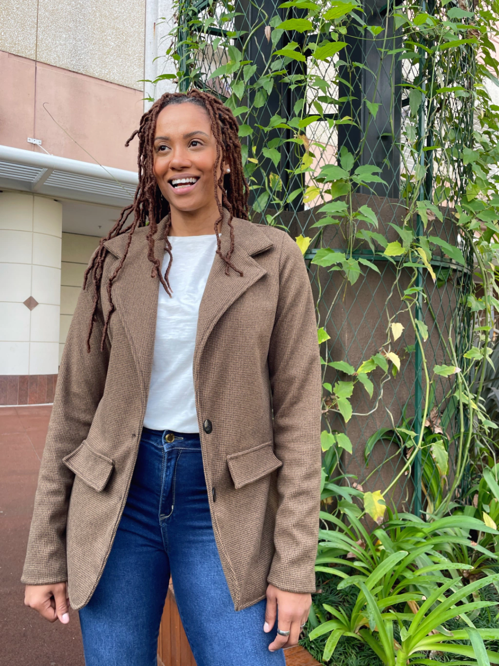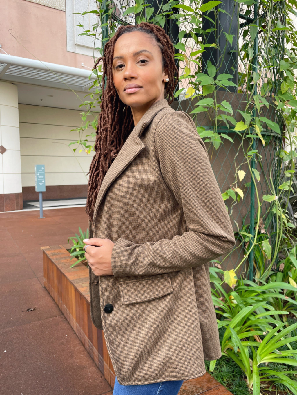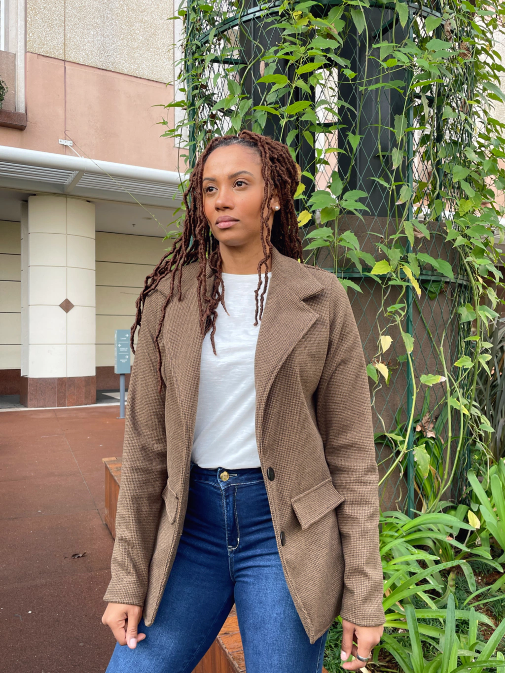 Impecável. Agora você, mulher alta, tem ao seu alcance um blazer de alto padrão. Com modelagem slim, todo forrado e costura impecável. O xadrez ultrapassa décadas e continua em alta. Essa variação de xadrez é chamada de pied-de-poule e é a estampa de xadrez favorita nas maisons de alta-costura. Um blazer perfeito, com uma estampa perfeita, em uma modelagem feita especialmente para você e para você chamar de seu.