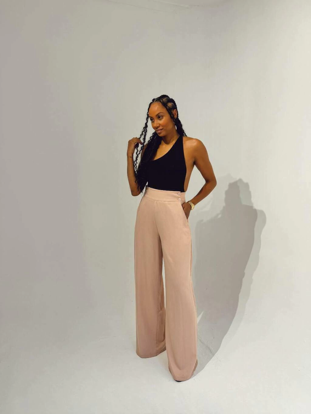 Sinta-se confiante e confortável com uma calça pensada para mulheres altas, que oferece a sofisticação e o estilo que você merece. Transforme seu guarda-roupa com a nossa calça em alfaiataria e descubra o verdadeiro significado de classe e conforto.