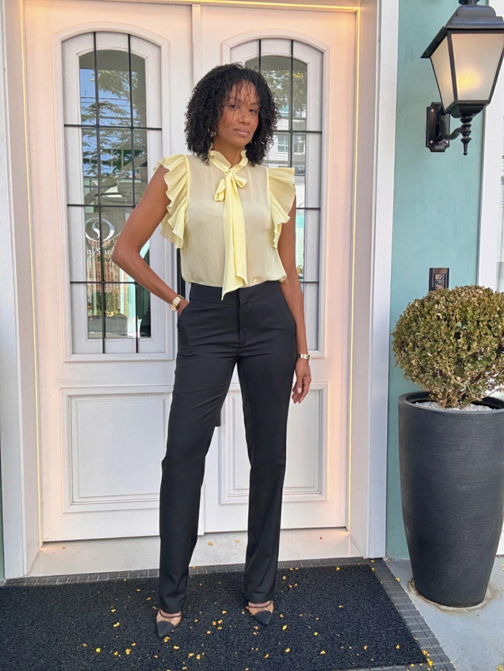A calça preta básica em alfaiataria é uma peça fundamental que toda mulher alta precisa ter. Com sua modelagem reta, ela proporciona um caimento impecável, valorizando sua silhueta de forma elegante e sofisticada. Versátil e atemporal.