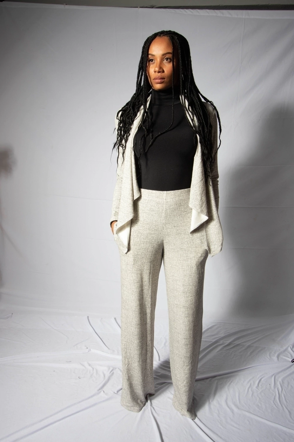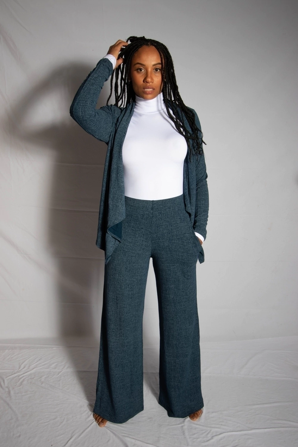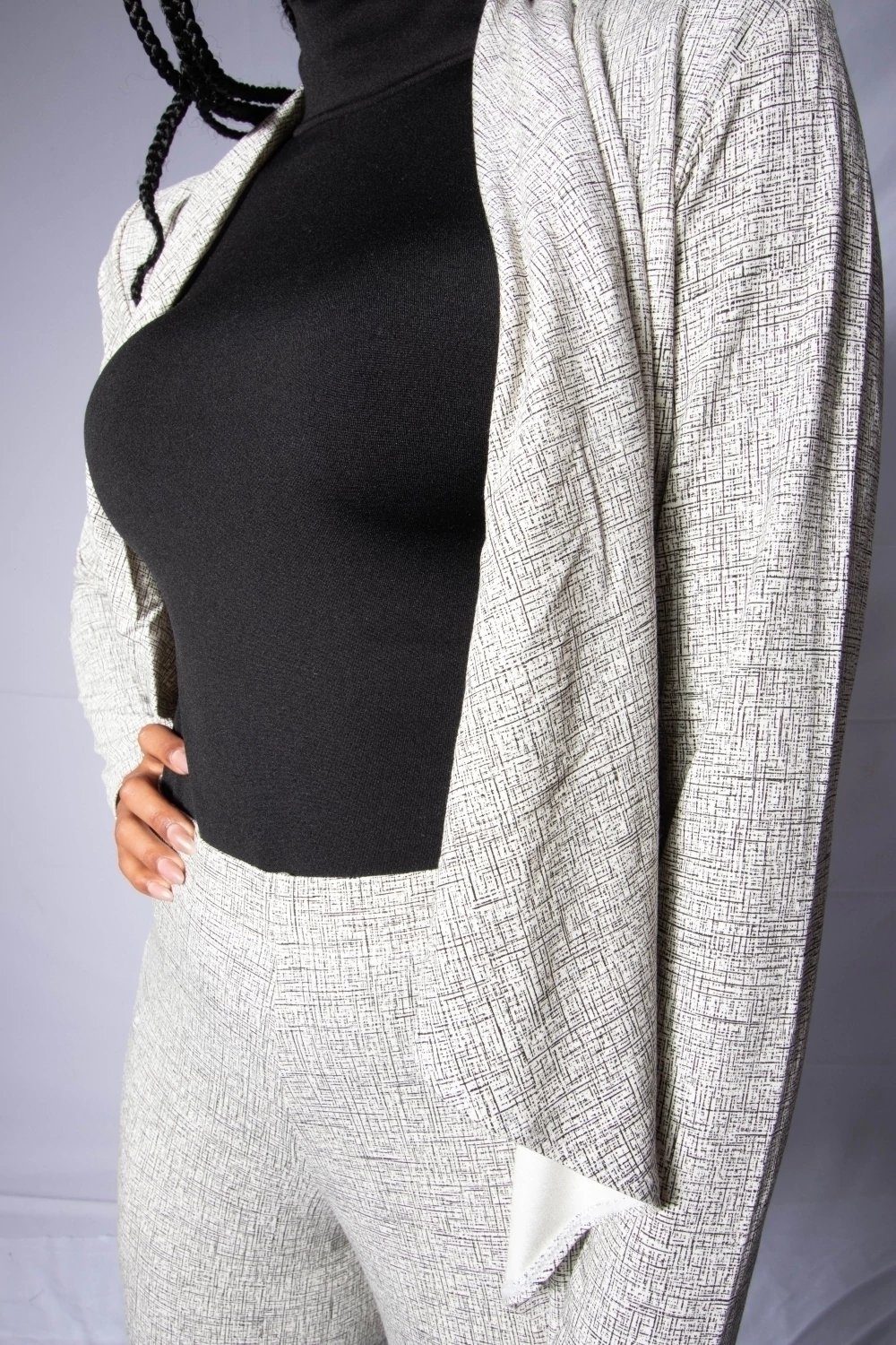 O nome do tecido é moletinho com viscose. E com 40% de viscose em sua composição. As peças produzidas com esse tecido são peças lindas, com fluidez e leveza. Contém também 8% de elastano que facilita ainda mais o caimento em diversos tipos de corpos.