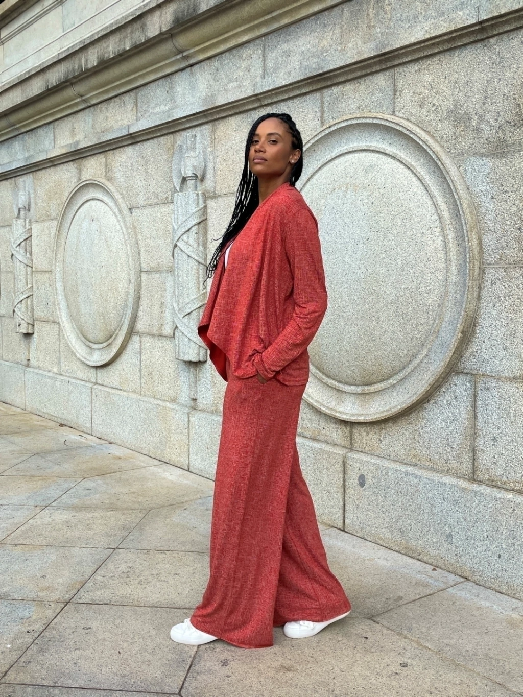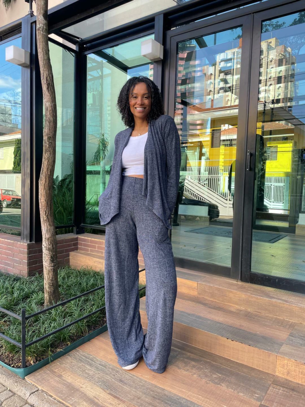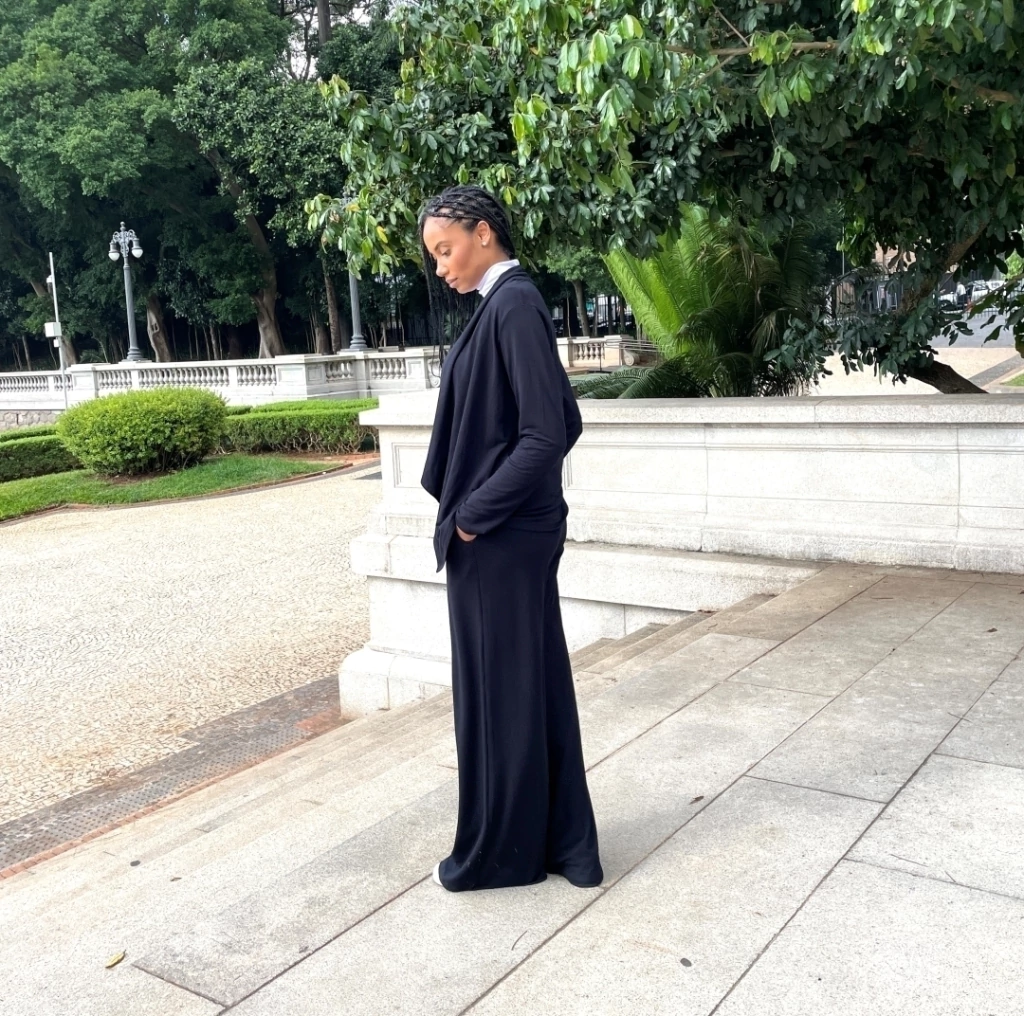Composto por blusa e calça em um tecido moderno, confortável, e cheio de movimento.