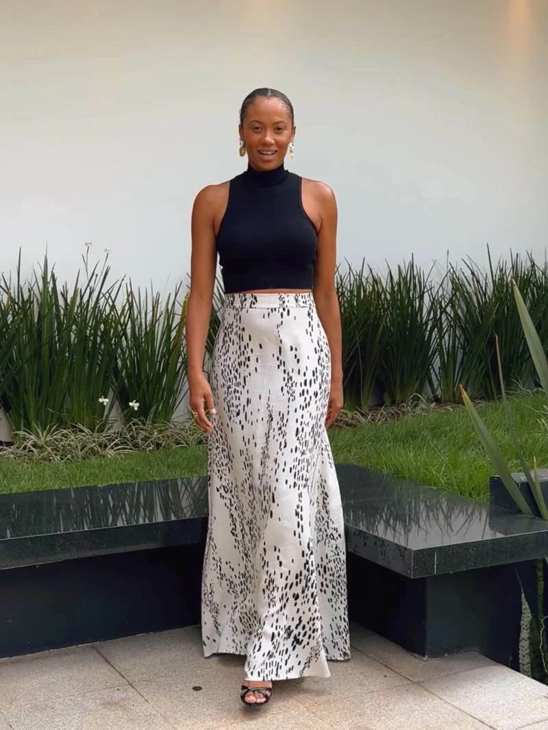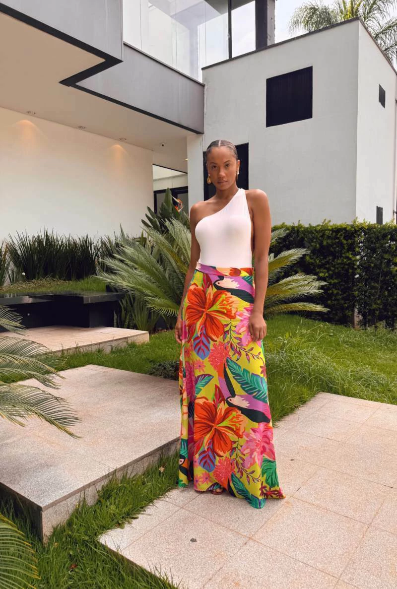 Saia longa e fluida, confeccionada em 100% viscose, com modelagem godê e cintura alta. Ideal para mulheres altas que buscam sofisticação, frescor e conforto nos dias mais quentes. A suavidade e a leveza do tecido de fibra natural garantem um caimento impecável e uma experiência única.