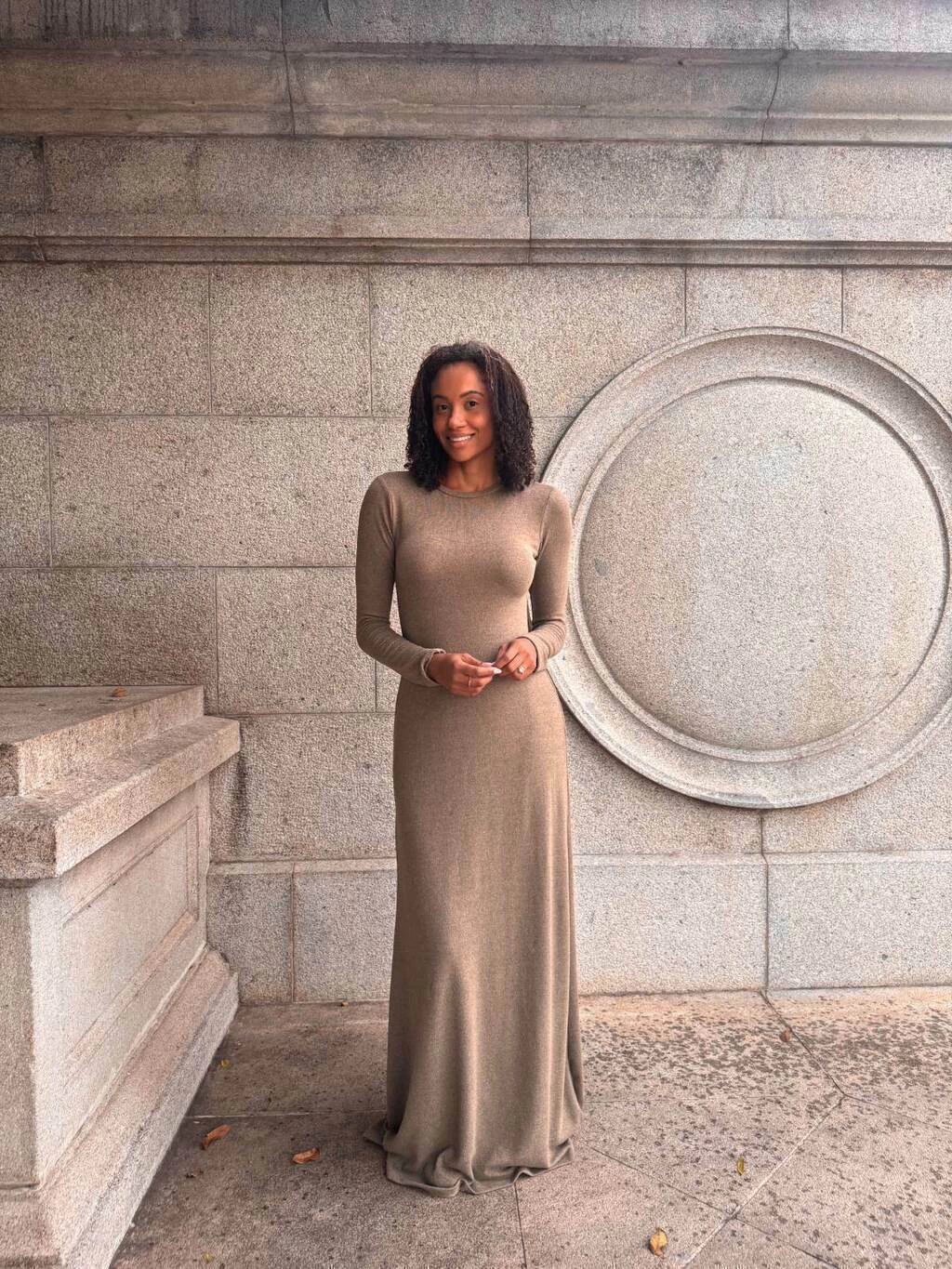 Elegante, sóbrio, lindo e quentinho — ele poderia ter todos esses nomes também. Um vestido da nossa linha básica, feito para acompanhar você em qualquer ocasião.