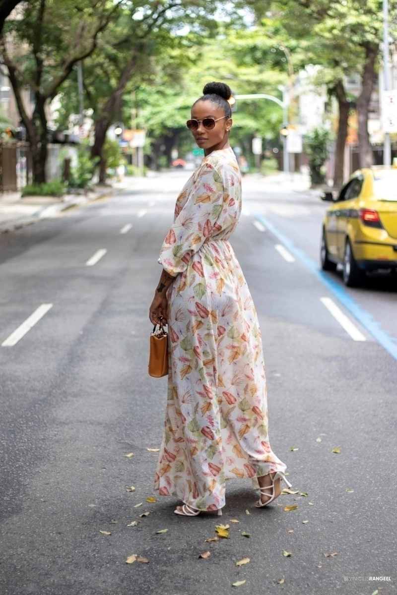 Vestido longo com caimento fluído e cheio de movimento, assim como a estampa exclusiva da nossa marca. Representa a leveza, o charme e a alegria do verão. Invista para ocasiões especiais e viagens exclusivas para arrasar com o look!