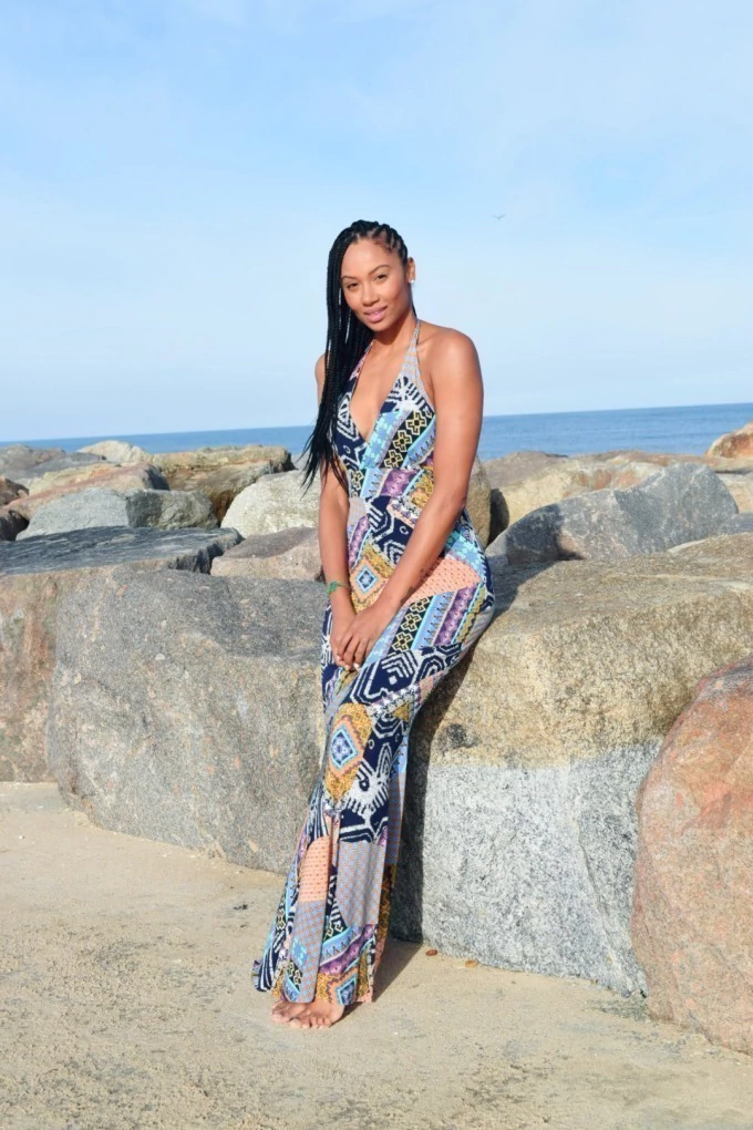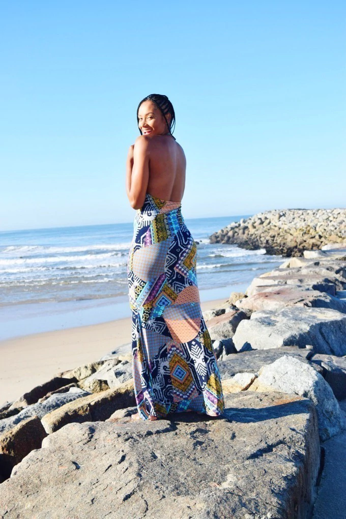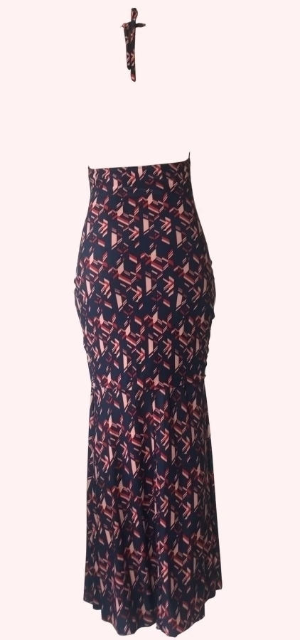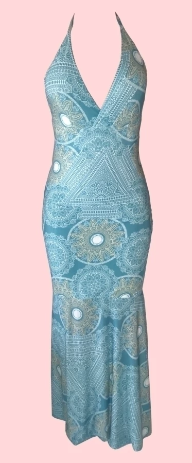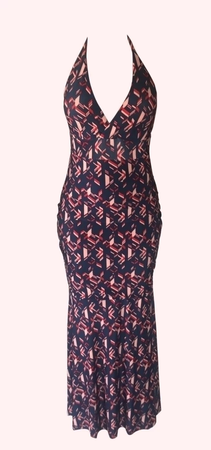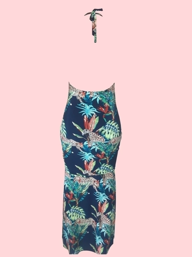 Vestido frente única, decote em V, levemente cruzado na frente.
